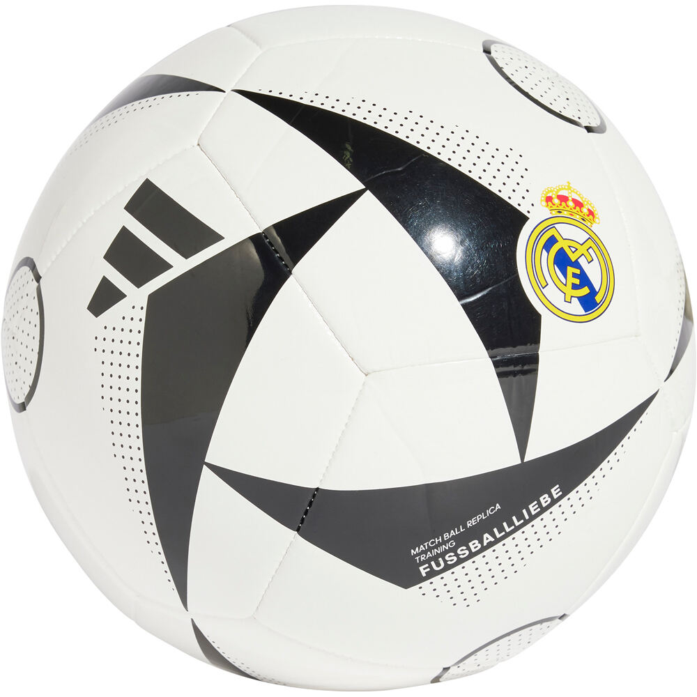 - Lleva la pasión por el Real Madrid a cada partido con este balón de fútbol de adidas inspirado en la primera equipación del club. Sus colores emblemáticos y el escudo del equipo resaltan en su diseño, haciendo que destaque en cada jugada. La superficie cosida a máquina asegura un toque suave y preciso, mientras que la resistente cubierta de TPU ofrece durabilidad para los partidos más intensos. Además, su cámara de butilo garantiza una excelente retención de aire, para que disfrutes de largas sesiones sin preocuparte por inflarlo constantemente. Ya sea para entrenar en el parque o jugar con amigos, este balón es para los verdaderos aficionados. ¡Haz que tu pasión por el fútbol brille y demuestra tu lealtad al Real Madrid!