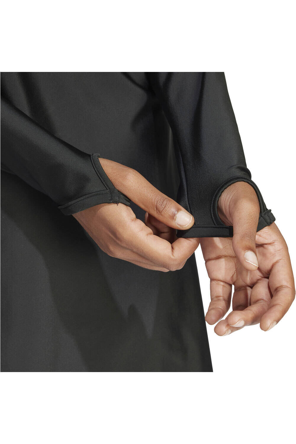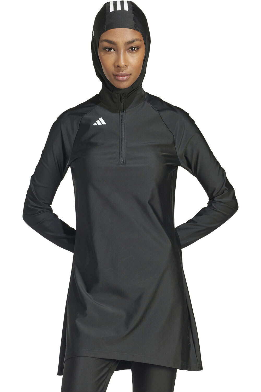 - Con este bañador adidas de manga larga y cobertura total, podrás nadar con total confianza y disfrutar de aventuras acuáticas inolvidables. Este elegante traje de baño está confeccionado en un tejido ligero y resistente al cloro, asegurando la máxima durabilidad sin comprometer la comodidad. Su sujetador interior con relleno extraíble brinda un soporte personalizado, mientras que la cremallera hasta el pecho con cuello falso añade un toque de estilo funcional. Te encantará su tacto ligero, diseñado para acompañarte en cada chapuzón en la piscina o en la playa. ¡Hazte con este bañador adidas y diviértete en el agua con total confianza!