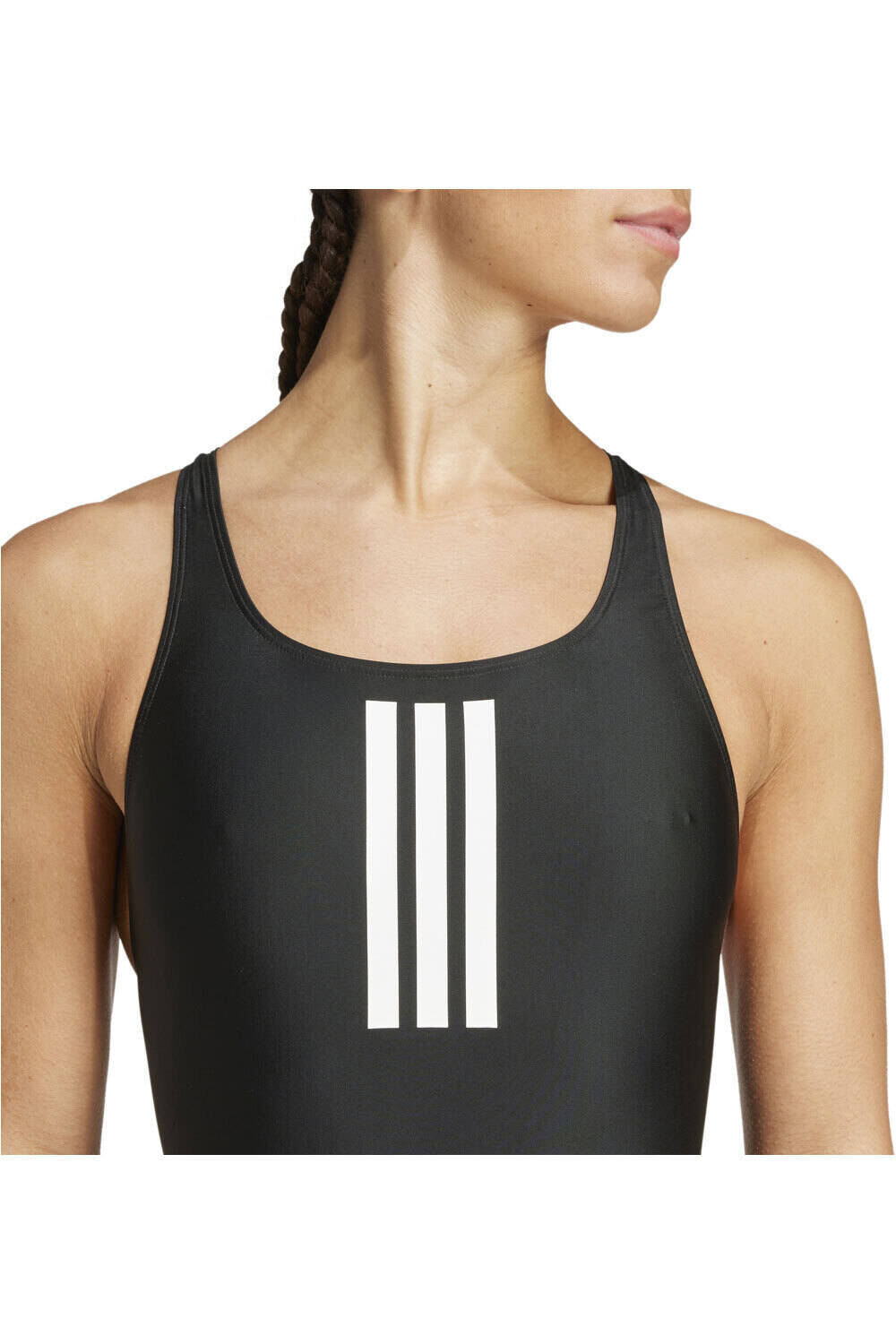 - Sumérgete con confianza en el agua con cada brazada gracias a este bañador de adidas. Las icónicas 3 bandas, esta vez ubicadas en el centro del pecho, te aseguran destacar tanto en la piscina como en la playa. Confeccionado con un tejido elástico resistente al cloro, este bañador te ofrece durabilidad y comodidad, manteniendo su forma y color tras cada uso. Además, está hecho con un 70% de materiales reciclados, lo que lo convierte en una opción más consciente para el medio ambiente. Diseñado para ajustarse a tu cuerpo y permitirte libertad de movimiento, es ideal para cualquier actividad acuática, desde entrenamientos intensos hasta momentos de relax en el agua. ¡Prepárate para dar lo mejor de ti en el agua con adidas!