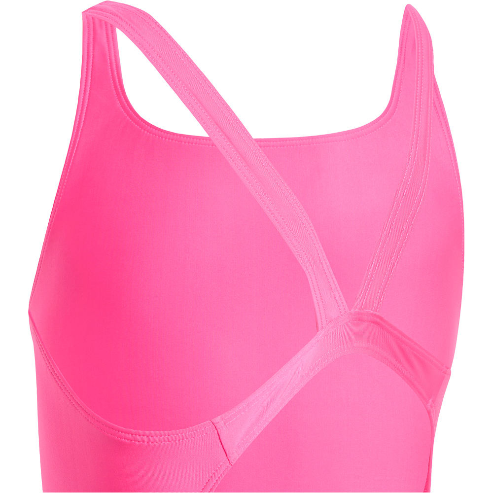 - Descubre cómo tu hija puede alcanzar su máximo potencial en la piscina con este bañador adidas con espalda en V. Diseñado para ofrecerle una libertad de movimiento incomparable, este bañador se adapta a cada brazada, permitiendo que se desenvuelva con naturalidad y confianza. La tecnología del tejido Infinitex asegura que el bañador resista al cloro, garantizando su durabilidad y manteniendo la frescura del color nado tras nado. Confeccionado en Poliéster 100% reciclado, este bañador no solo es una opción inteligente, sino también respetuosa con el medio ambiente. El corte ajustado y el cuello redondo aseguran un ajuste perfecto y cómodo, convirtiéndolo en la elección ideal para sus entrenamientos o competencias. Dale la ventaja que necesita en el agua con un bañador que fusiona estilo, rendimiento y sostenibilidad.