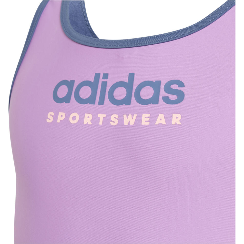 - ¡Prepárate para ver a tu pequeña brillar este verano! Con este bañador adidas, tu hija disfrutará al máximo de sus aventuras acuáticas. Su tejido de punto suave y elástico se adapta a su cuerpo, proporcionando comodidad durante horas de diversión bajo el sol. ¡Y no te preocupes por el cloro, porque ya no será un problema! El tejido de este bañador resiste a este componente, sin que afecte a su forma ni color. Y la espalda en forma de U añade más estilo al look, para que presuma de ir a la última. ¡Haz que este verano sea inolvidable para tu pequeña nadadora con adidas!