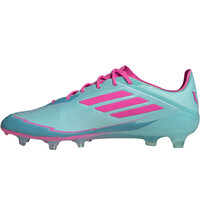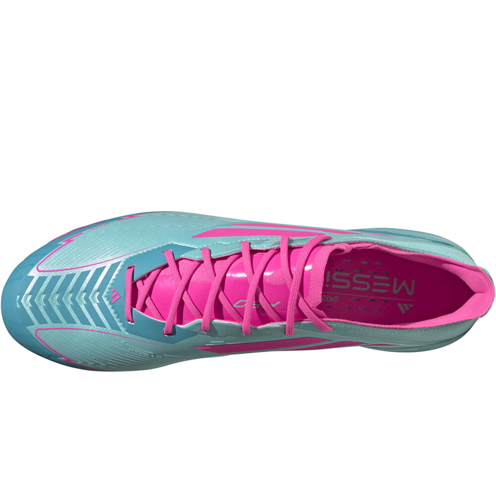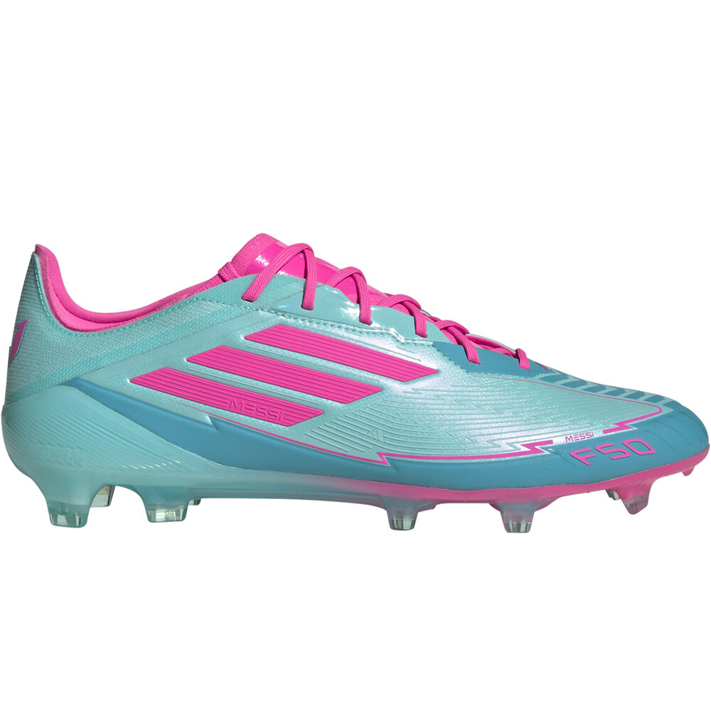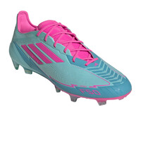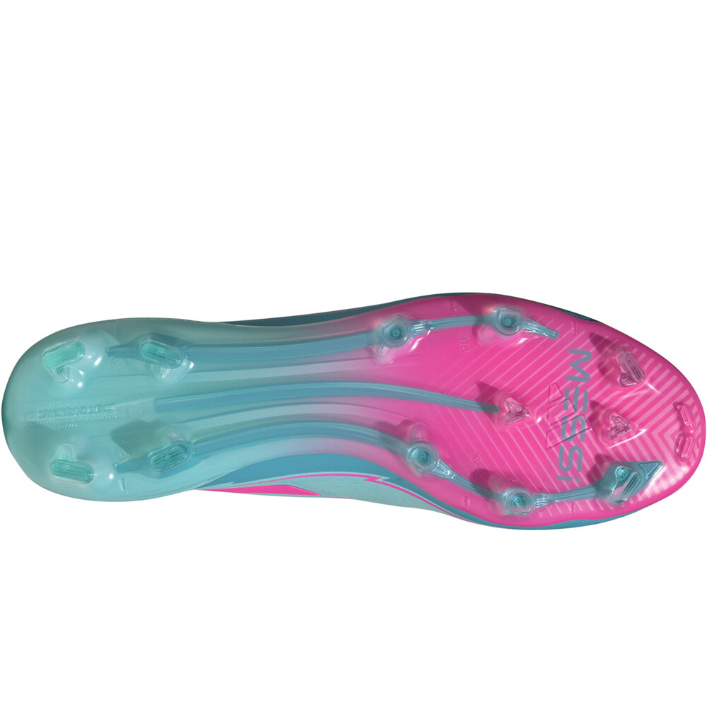 - El upper de las botas adidas F50 Elite Messi FG Azul Rosa está confeccionado con tecnología Fibertouch y textura Sprintweb 3D ambas combinadas para ofrecer el ajuste impecable y el toque único de balón que buscas. La talonera de soporte y estabilidad cuenta con almohadillas interiores de excelente fijación y confort para el pie. Una lengüeta compresiva elástica, mini acolchada y unida interiormente, aumenta la sensación natural de conexión. Contiene al menos un 20% de material reciclado.