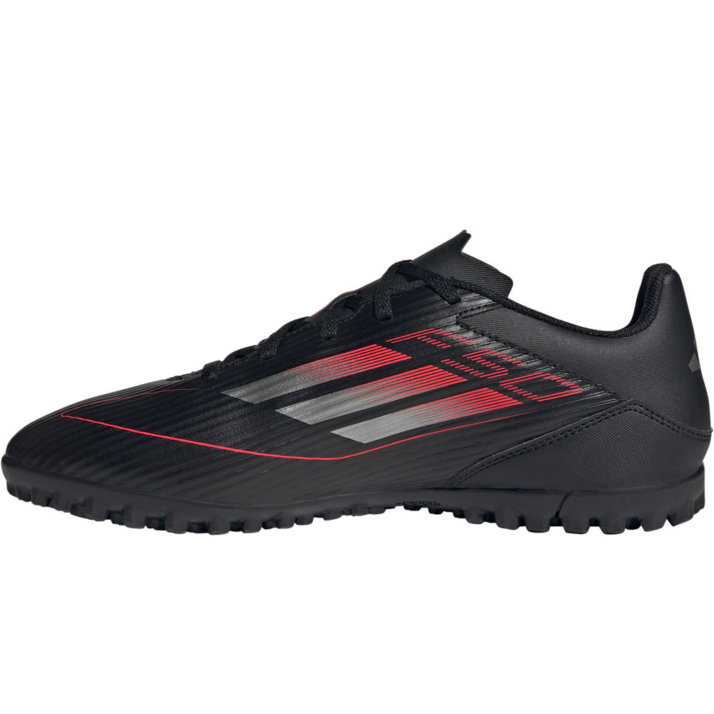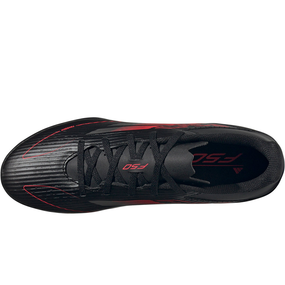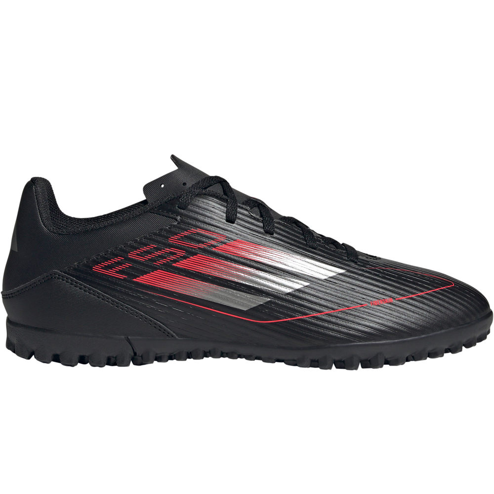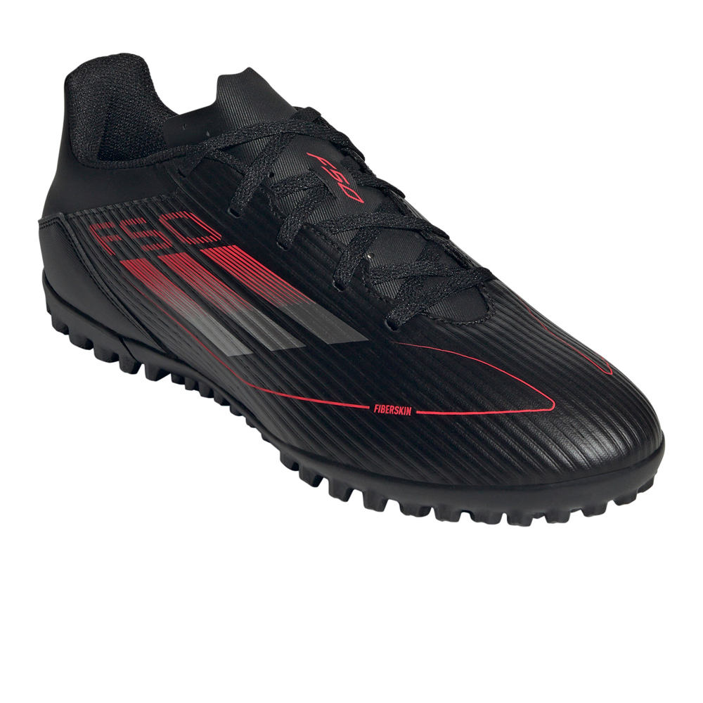 - El upper de las botas de fútbol adidas F50 Club TF Negro Plata Rojo está construido con el material sintético Fiberskin de avanzado diseño, ligero y resistente. El collar acolchado con forro interior textil aporta confort y transpirabilidad. Contiene al menos un 20 % de contenido reciclado.
