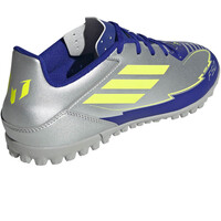- El upper de las botas de fútbol adidas F50 Club Messi TF Plata Azul Amarillo está construido con el material sintético de avanzado diseño, ligero y resistente. El collar acolchado con forro interior textil aporta confort y transpirabilidad. Lengüeta fina perforada de transpiración. Contiene al menos un 20 % de contenido reciclado.