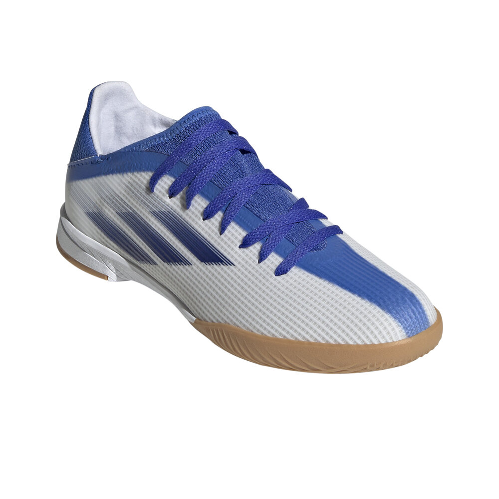 - Para jugadores de fútbol habituales que entrenan o compiten. Demuestra tu calidad y deshazte de tus rivales en un abrir y cerrar de ojos. La X SPEEDFLOW.3 IN Jr. presenta un antepié confeccionado en material sintético que te protege en los desbordes y las fintas. Esta zapatilla de fútbol sala para los más jóvenes incorpora una suela de goma diseñada para realizar movimientos vertiginosos y explosivos en pista cubierta. La nueva línea de botas que utilizan Karim Benzema, Mohamed Salah o João Felix, jugadores ágiles y desequilabrantes.