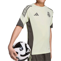 - Inspira la grandeza del fútbol con la camiseta de entrenamiento adidas del Real Madrid Tiro 25 para niño. Es la compañera ideal para esas jóvenes promesas que sueñan con emular a sus ídolos bajo el estandarte blanco. Diseñada específicamente para aquellos que llevan el fútbol en las venas, esta camiseta presenta un corte clásico y un cómodo cuello redondo. Confeccionada al 100% en Poliéster reciclado, no solo asegura un ajuste perfecto, sino que también contribuye al cuidado del planeta. La tecnología AEROREADY garantiza que tu hijo se mantenga fresco y seco, incluso en las sesiones más intensas. Además, el escudo termo transferido del Real Madrid en el pecho añade ese toque de inspiración que los animará a dar lo mejor de sí mismos. Haz de cada entrenamiento una oportunidad para brillar con el respaldo de la historia y el prestigio del Real Madrid.