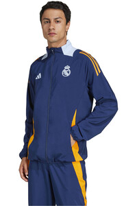 - Demuestra tu lealtad al Real Madrid con esta chaqueta adidas creada para que los jugadores muestren su espíritu de unión fuera del terreno de juego. La tecnología transpirable AEROREADY mantiene la piel seca mientras apoyas incondicionalmente a los blancos. Presenta un diseño inspirado en los vibrantes colores de la segunda equipación del club sobre el que destaca el escudo termotransferido en el pecho, reflejando tu pasión por el fútbol de élite. Este producto contiene al menos un 70% de materiales reciclados. Utilizando materiales reciclados, reducimos los residuos, nuestra dependencia de los recursos finitos y la huella que generan los productos que fabricamos.