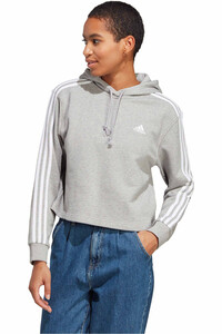 - Añade un toque de estilo deportivo a tu guardarropa con la sudadera con capucha de adidas Essentials para mujer. Este modelo de corte clásico combina la comodidad de la felpa de algodón con un diseño moderno que se sitúa justo por encima de la cintura, ofreciéndote una silueta elegante y favorecedora. La capucha con cordón ajustable te brinda protección adicional en los días frescos, mientras que los puños de canalé aseguran que se adapte bien a ti. Las 3 bandas icónicas en las mangas y el logotipo de adidas en el pecho resaltan tu pasión por el deporte y añaden un toque distintivo a tu look. Ideal para cualquier ocasión, desde una salida casual hasta una sesión de entrenamiento.
