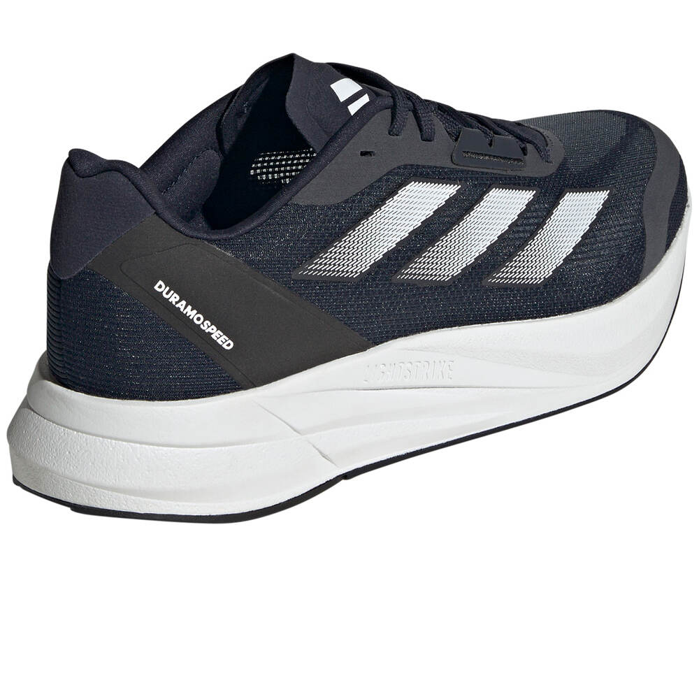 - La zapatilla running adidas Duramo Speed Marino Blanco presenta un diseño de malla transpirable y ajustada. Los refuerzos termosellados sujetan el pie en los movimientos laterales y cambios de dirección. Contiene al menos un 50% de materiales reciclados.