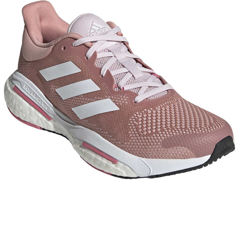 - Para correr por asfalto más de 4 veces por semana no menos de 60 minutos. La nueva SOLAR GLIDE 5 W de adidas se han renovado por completo para ofrecer una zapatilla más dinámica, más cómoda y de mejorado rendimiento. El nuevo upper se presenta en tejido de punto textil más suave, elástico y confortable que se combina con una mediasuela BOOST con sistema adidas LEP 2.0 que proporcionan un retorno de energía increíble y una estabilidad superior. La suela de caucho Continental™ garantiza un excelente agarre tanto en superficies secas como en suelo mojado. Fabricada con un hilo de alto rendimiento que contiene un 50% de Parley Ocean Plastic y un 50% de poliéster reciclado. Es la zapatilla de running perfecta para tu entrenamiento diario o para la carrera que te has marcado. Toma el control.