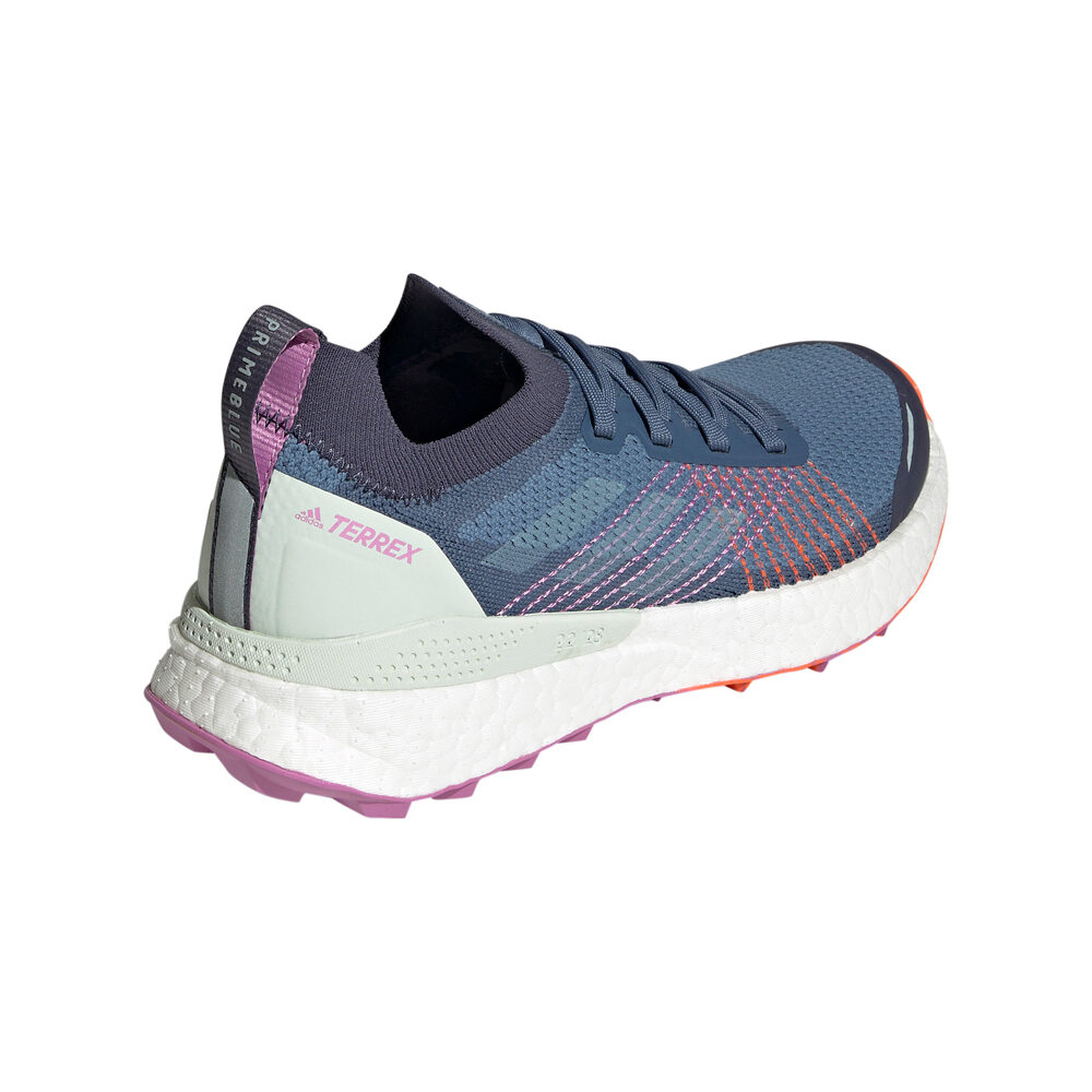 - Para correr por terreno irregular y montaña más de 4 veces por semana y mas de 60 minutos. La zapatilla de trail running mujer Terrex Two Ultra Primeblue W azul, llega para llevarte más rápido y más lejos. Explora lo nunca visto. La zapatillas Terrex Two Ultra Primeblue W están confeccionadas en tejido Primeknit con hilo Primeblue reciclado a partir de residuos plásticos recogidos en el mar. La mediasuela con amortiguación Boost genera mayor energía e impulso en cada zancada. La suela de caucho Continental™ con diseño taqueado que te garantizan la adherencia que necesitas en un amplio abanico de terrenos, secos o mojados. La Terrex Two Ultra Primeblue W es una zapatilla de comodidad extrema para carreras de larga distancia con las mejores prestaciones y tecnologías.