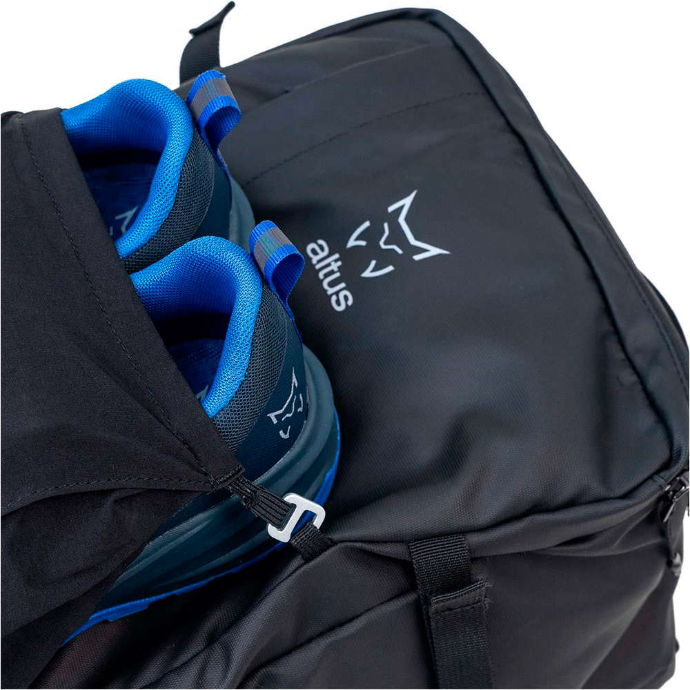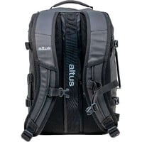- Permitido por las aerolíneas como bolso de mano, la mochila de cabina de Altus ha sido elaborada en poliéster con resinado de PU, para ofrecerte una gran durabilidad y resistencia. Incorpora un compartimento principal, con una banda tensora para fijar el equipaje. Se puede transportar tanto en vertical como en horizontalmente, debido a sus dos asas y una cinta trasera para acoplar a una maleta.