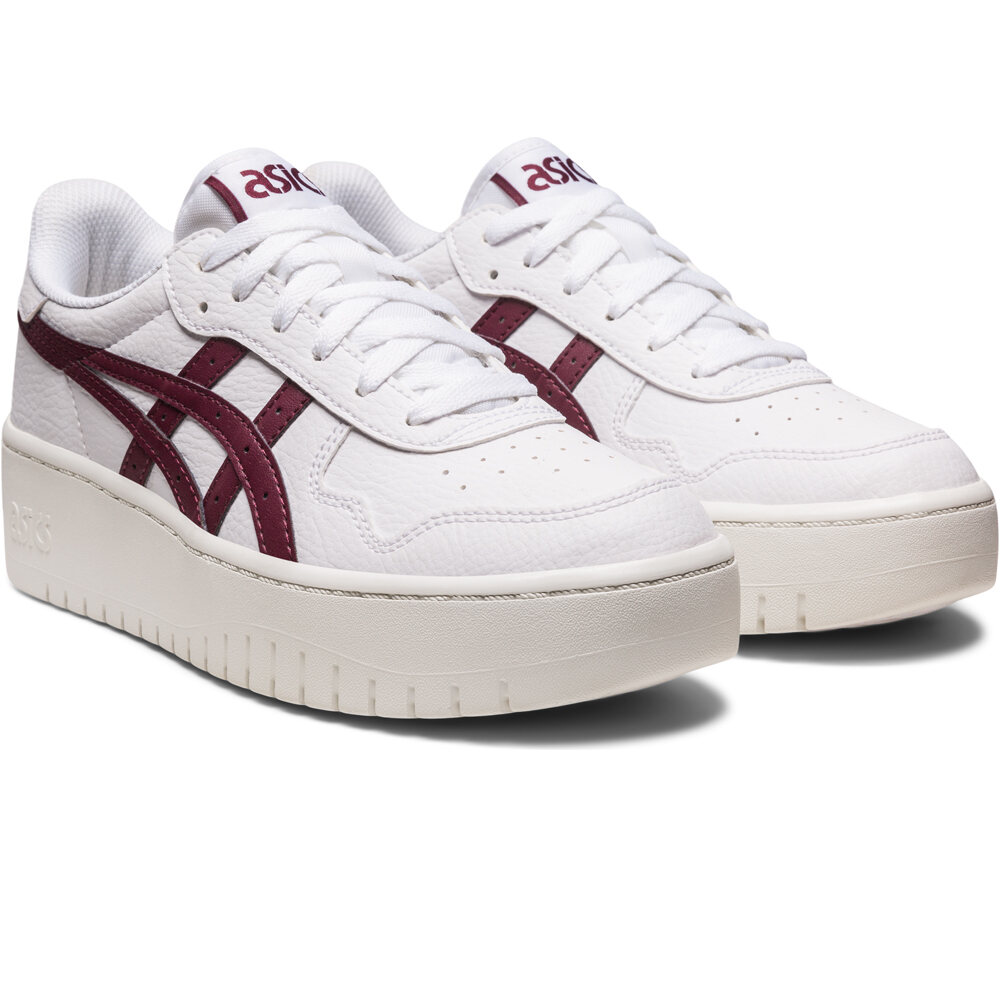 - Las zapatillas JAPAN S™ PF se basan en uno de los lanzamientos de Asics de 1981. Este modelo exclusivo para mujeres se ha rediseñado con tonos neutros y la entresuela habitual se ha sustituido por un diseño con plataforma. Imitando la estética de las zapatillas de baloncesto retro, este diseño tradicional también se combina con un estilo nostálgico de la marca ASICS, como rayas de tigre en los paneles laterales y letras ASICS en el talón. La estética de las zapatillas de baloncesto vintage JAPAN S™ PF se acompaña con detalles icónicos de la cancha que se han inspirado en el calzado que usaban los jugadores de baloncesto en los 80.