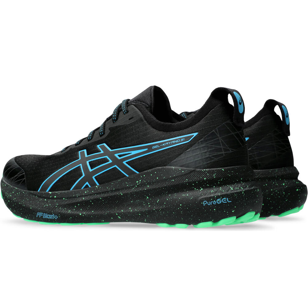 - La mediasuela de las zapatillas Asics GEL-KAYANO 31 LITE-SHOW incorpora la amortiguación FF BLAST™ PLUS ECO que permite una mayor adaptación con mayor ligereza y reactividad. Se complementa con la tecnología PureGEL™ para garantizar absorción óptima en cada impacto. Tecnología 4D GUIDANCE SYSTEM™ que permite estabilizar la pisada y tener más control en las transiciones. Plantilla OrthoLite™ X-55 que mejora el confort.