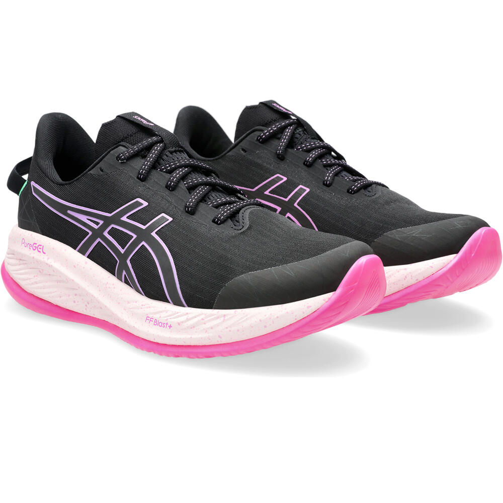 - Para correr por asfalto más de 4 veces por semana no menos de 60 minutos. Vive una experiencia de running inolvidable con la zapatilla running mujer Asics GEL-CUMULUS™ 26 LITE-SHOW, el modelo más versátil para el entrenamiento diario de la marca japonesa. Diseñada para garantizar la máxima comodidad, esta zapatilla neutra se siente excepcionalmente confortable en cada zancada. Esta versión LITE-SHOW™ cuenta con detalles reflectantes para brillar en la oscuridad, mejorando tu seguridad en condiciones de poca luz. La actualización de la mediasuela con las tecnologías FF BLAST™PLUS y PureGEL™ conforman un chasis que aumenta su capacidad de amortiguación y respuesta reactiva. Su construcción en materiales reciclados y la moderna silueta van un paso por delante, ideales para corredoras de peso medio o ligero que necesitan una zapatilla para casi todo, todos los días, rodar a ritmos medios en entrenamientos largos o hacerlo de forma alegre en series, intervalos y fartleks.