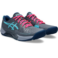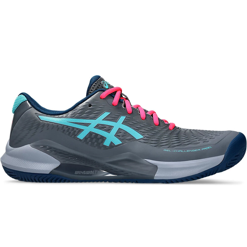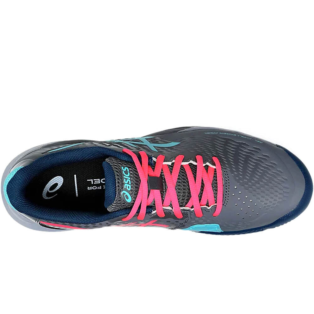 - Las zapatillas de pádel hombre Asics GEL CHALLENGER 14 PADEL Gris Turquesa Rosa presentan un empeine de malla protegida y confortable con refuerzos exteriores que aportan sujeción y ajuste. Protector PGUARD™ en la puntera para aumentar la seguridad en los dedos a la vez que reduce el nivel de desgaste. Realizadas en parte con materiales reciclados como compromiso con el medio ambiente.