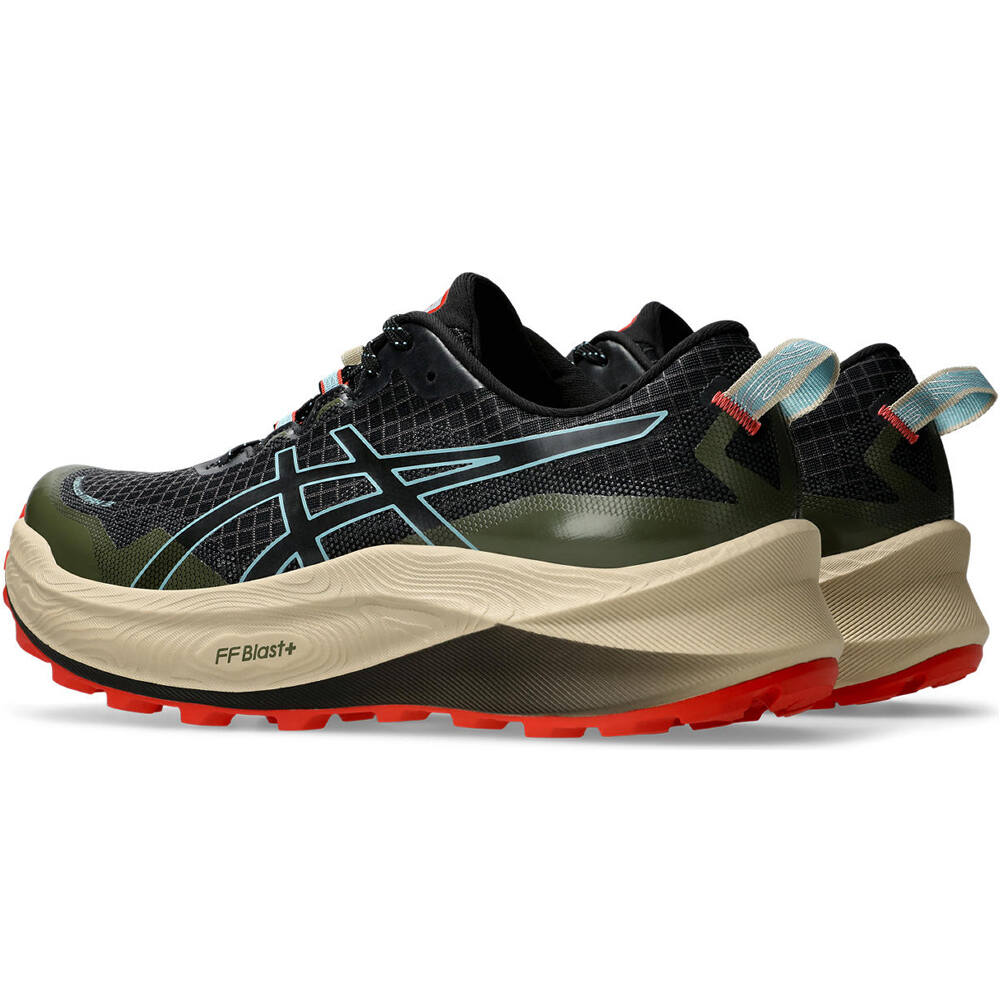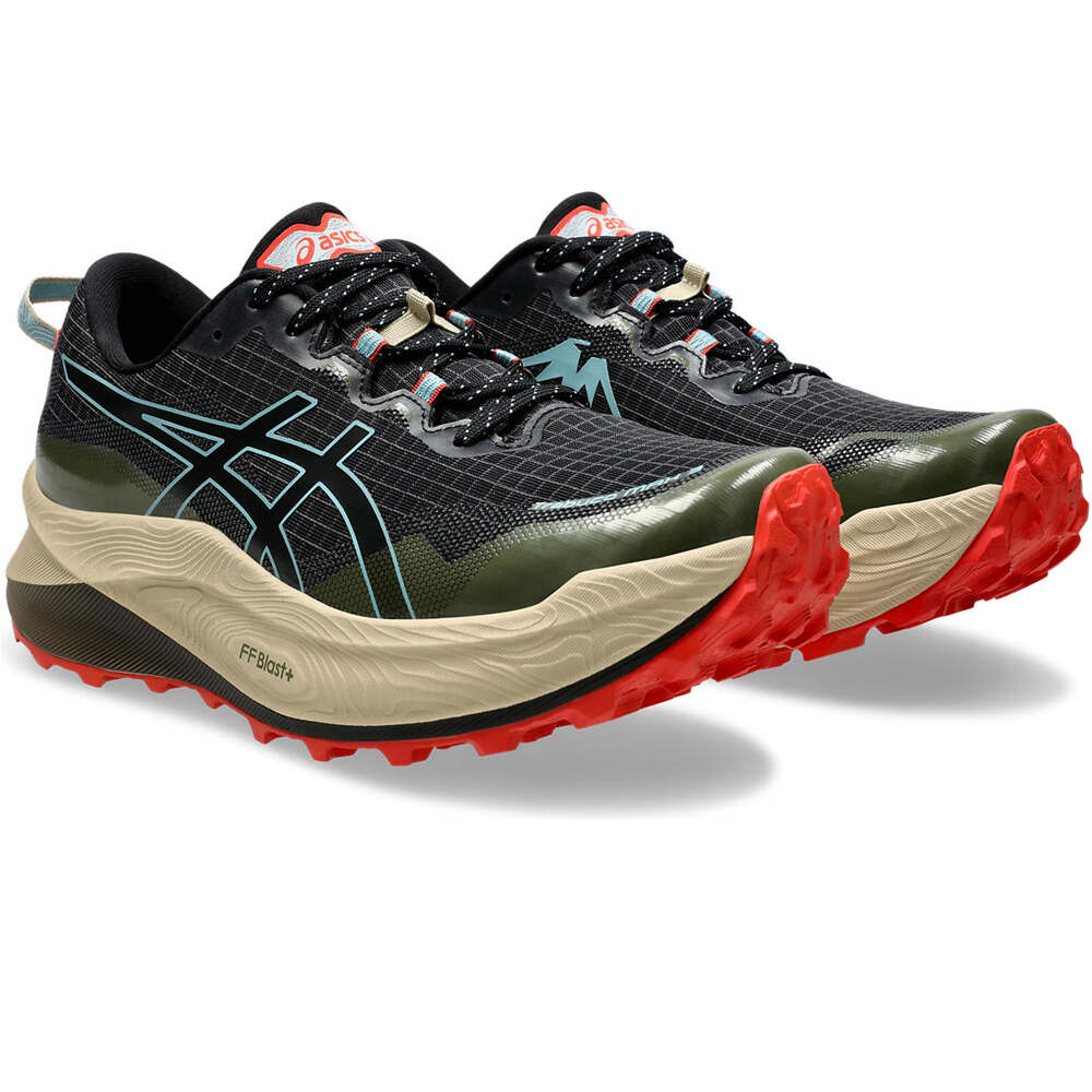 - Las zapatillas trail running ASICS TRABUCO MAX™ 3 Negro Azul Verde están confeccionadas con una malla multicapa de micro rejilla transpirable, con refuerzos en 3D que reducen las fricciones y las rozaduras de elementos externos. El nuevo diseño del talón está más acolchado y viene con tirador de ajuste rápido. Al menos el 50% del material principal está fabricado con materiales reciclados.