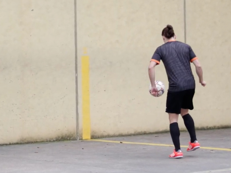 Haz un cuadrado de 5mx5m para lanzarte el balón con la mano (empieza de menos a más) para hacerte el control con el interior del pie de ambas piernas.