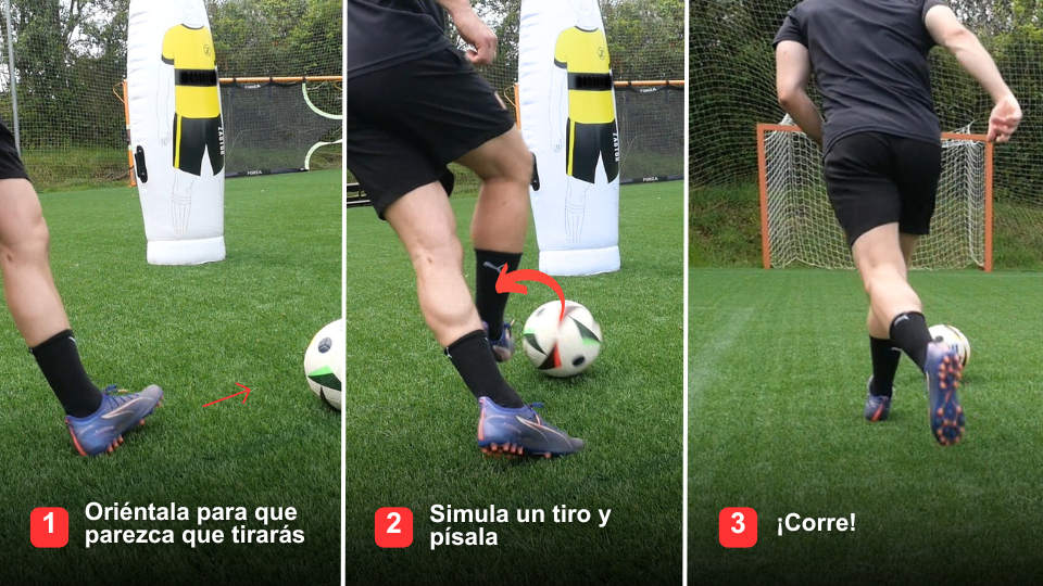 No corras al hacerlo. Cuanto más real parezca el amague de disparo, más probable es que el defensa reaccione con nerviosismo.