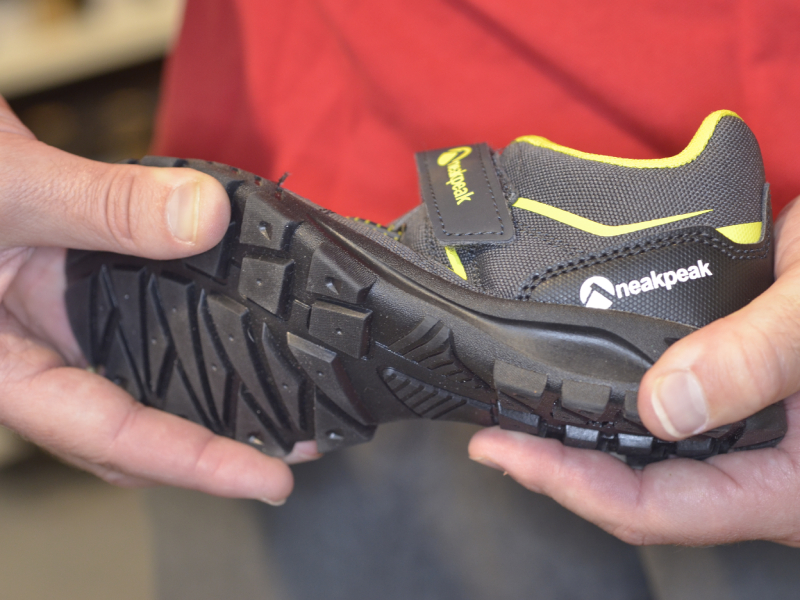 Sujetando el calzado por el talón y la puntera, y girando una de esas partes en sentido contrario a la otra, debemos poder torcerlo.