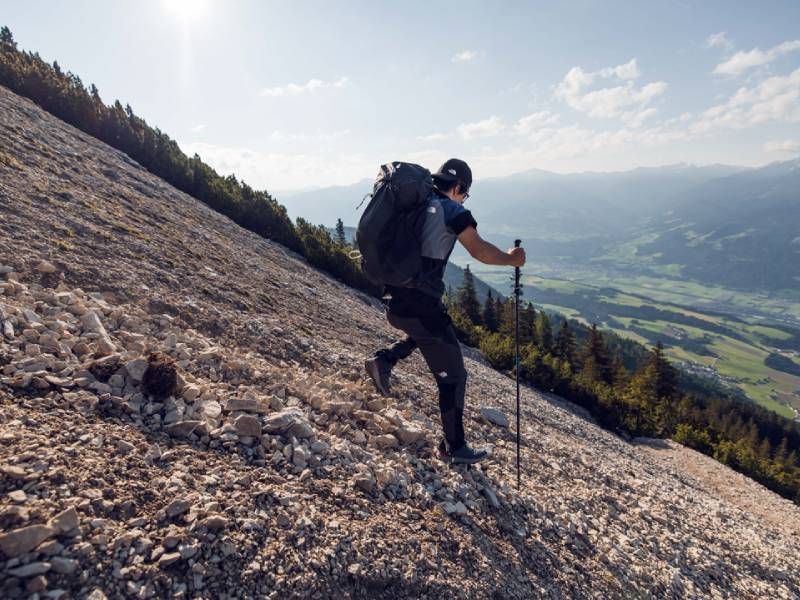 – Con una mochila pesada hay mayor probabilidad de perder el equilibrio cuando el terreno está empinado.