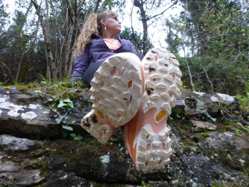 La puntera y el talón están reforzados de un material sintético protector, resistente a la abrasión y al roce contra las piedras, vegetación, etc, para lograr una protección extra.