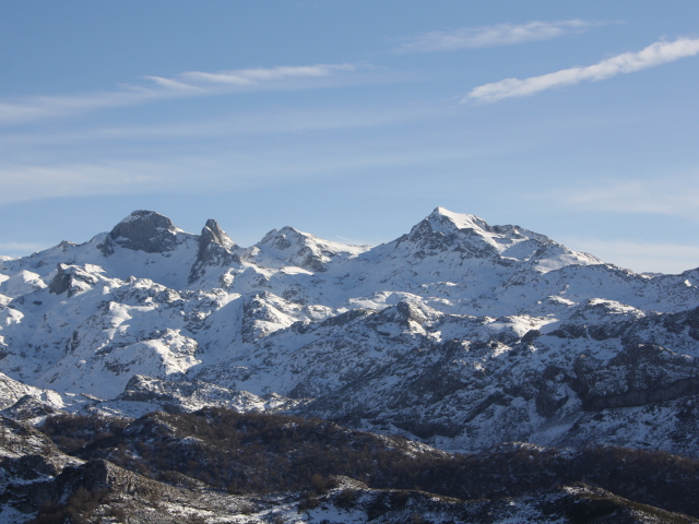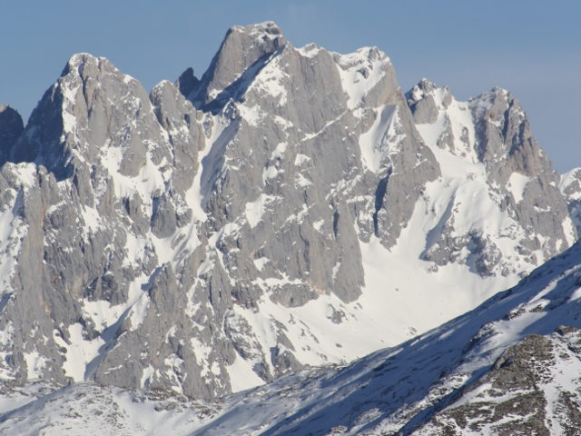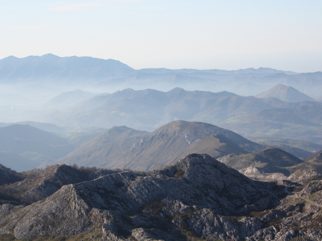 En el resto de direcciones, numerosos cordales interiores asturianos y la mayoría de las cumbres importantes de los Picos de Europa, sobresaliendo la panorámica sobre las Peñas Santas, Torre de Santa María de Enol (2.486 m) y Peña Santa de Castilla (2.596 m) en primer término.