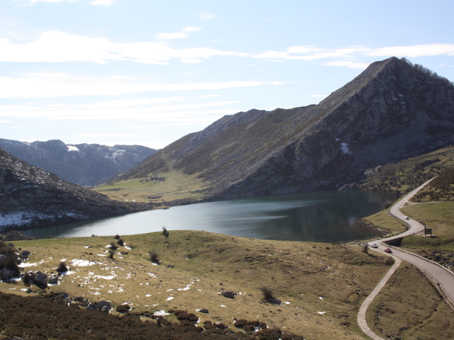 Desde el collado de Les Veleres, situado a 1.117 metros de altitud en la carretera CO-4 de acceso a los lagos, alto desde donde ya veremos el lago Enol en una preciosa vista por primera vez al frente y abajo.