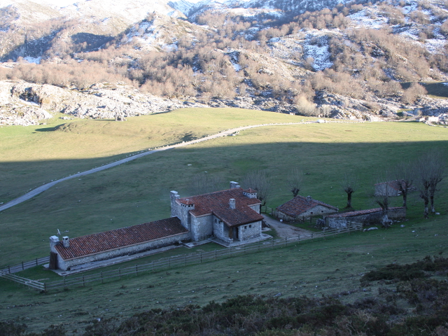 Bajaremos unos pocos metros por camino-pista hasta el entronque en la Vega de Enol con la pista principal, por la que deberemos seguir a la izquierda. A nuestra derecha, en el centro de la pradería, se halla la capilla del Buen Pastor, donde cada 25 de julio se oficia una misa y además de una gran romería con motivo de la Fiesta del Pastor, celebración cuyo objetivo principal es discutir el aprovechamiento de los pastos así como la elección de los celadores y el regidor de pastos.