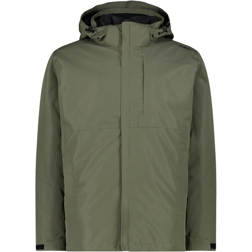 - La chaqueta de hombre CMP 33Z1577D es una prenda 3 en 1 que se adapta a tus necesidades. Esta chaqueta está compuesta por dos capas: una exterior impermeable y cortavientos, y una interior aislante y desmontable. Puedes usarlas juntas o por separado, según el clima y la actividad que realices. La chaqueta exterior tiene una capucha extraíble con botones a presión, dos bolsillos laterales con cremallera y un bolsillo en el pecho. El tejido es de sarga, resistente y duradero. La chaqueta interior tiene un relleno sintético que te mantiene abrigado y cómodo, y se puede quitar fácilmente gracias a las cremalleras. El color es verde oscuro, lo que le da un toque moderno y deportivo.