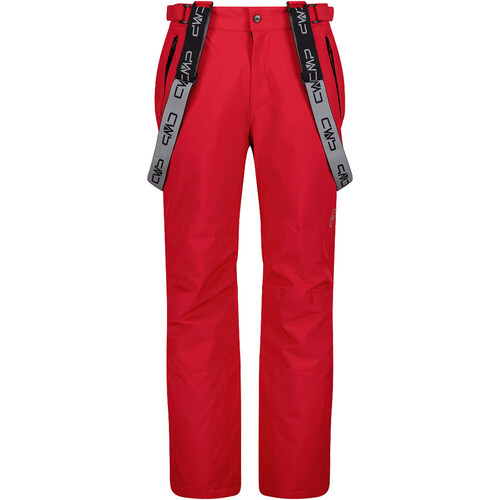 - Este pantalón de esquí para hombre CMP 3W17397N se ha rematado con cintura ajustable con velcro, tirantes desmontables, dos bolsillos laterales con cremallera, un bolsillo con cremallera en la parte trasera y abertura en la parte inferior con polaina elástica para protegerte de la nieve.