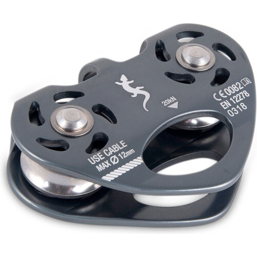 - Polea de Doble Eje para Tirolinas y Cable construida en acero inoxidable y equipada con rodamientos de bolas. El packaging está compuesto íntegramente por material biodegradable. Está hecho de papel kraft con tintes de origen vegetal. Todo el packaging se puede reciclar como papel.