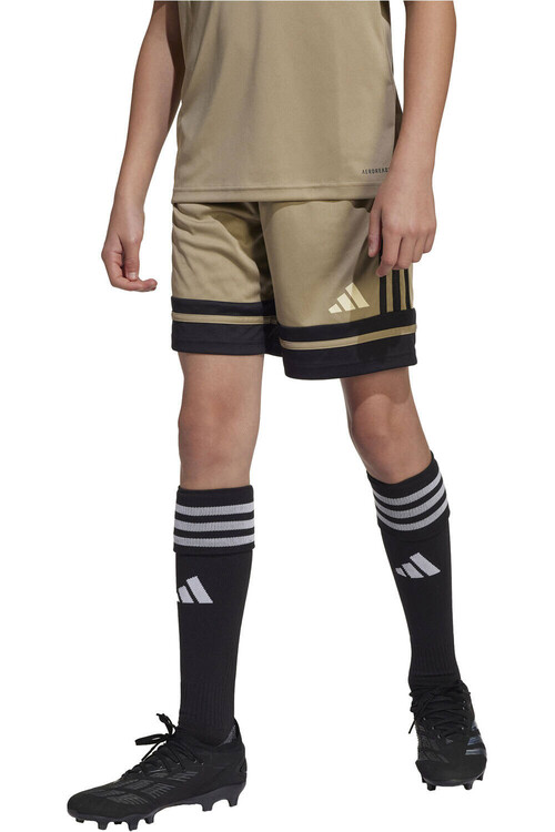 ×- Pantalones cortos de fútbol para niño. Pueden ser los pantalones de verano o los de entrenar al aire libre. Suelen ser por encima de las rodillas, viéndose las medias de fútbol al no cubrir la pierna por completo.