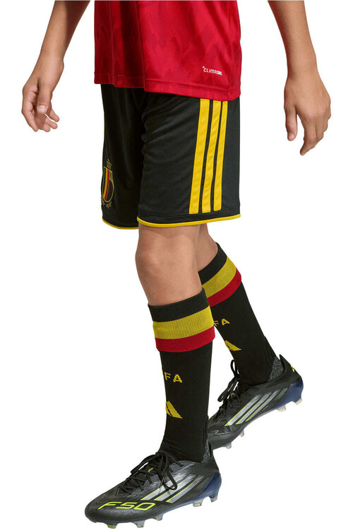 ×- Pantalones cortos de fútbol para niño. Pueden ser los pantalones de verano o los de entrenar al aire libre. Suelen ser por encima de las rodillas, viéndose las medias de fútbol al no cubrir la pierna por completo.