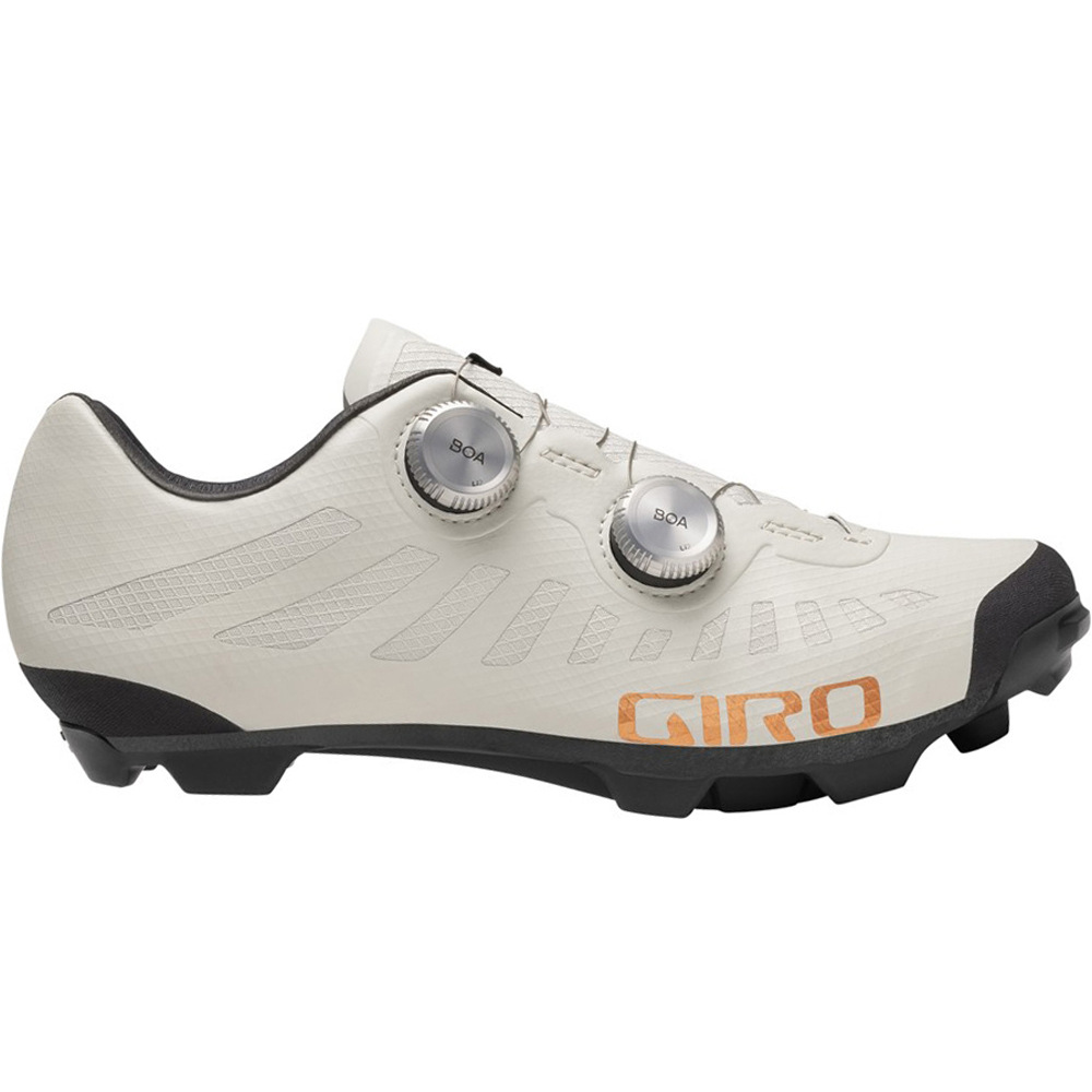 - Zapatillas de MTB XC y Gravel de rendimiento profesional para entrenamiento y competición. Las zapatillas Giro GRITTER están pensadas para el ciclismo de máximo nivel, sumando confort y estilo en cada pedalada dentro del mundo off-road. Están creadas con una cubierta superior de material Synchwire™, una combinación de malla ripstop transpirable y película de TPU ultrarresistente que ofrece el mejor compromiso entre ligereza, comodidad y buena ventilación. El sistema de cierre Dual Zone BOA® equipado con diales Li2 de aluminio mecanizado, proporciona una sujeción más potente y precisa para que solo pienses en el camino que tienes por delante. Además, la plantilla SuperNatural Fit Kit permite soporte personalizado al arco plantar, y una adaptación completa a cada tipo de pie. Una nueva suela exterior de compuesto de carbono y goma Sensor™ en la banda de rodadura, ofrece una transmisión de energía y potencia directas al pedal y excelente agarre cuando pones pie a tierra. Giro GRITTER es la respuesta para los ciclistas amantes del Gravel y Cross-County actual, una zapatilla de materiales premium e innovaciones tecnológicas que aseguran una experiencia de alto rendimiento en rutas técnicas, terrenos de todo tipo y competiciones exigentes.