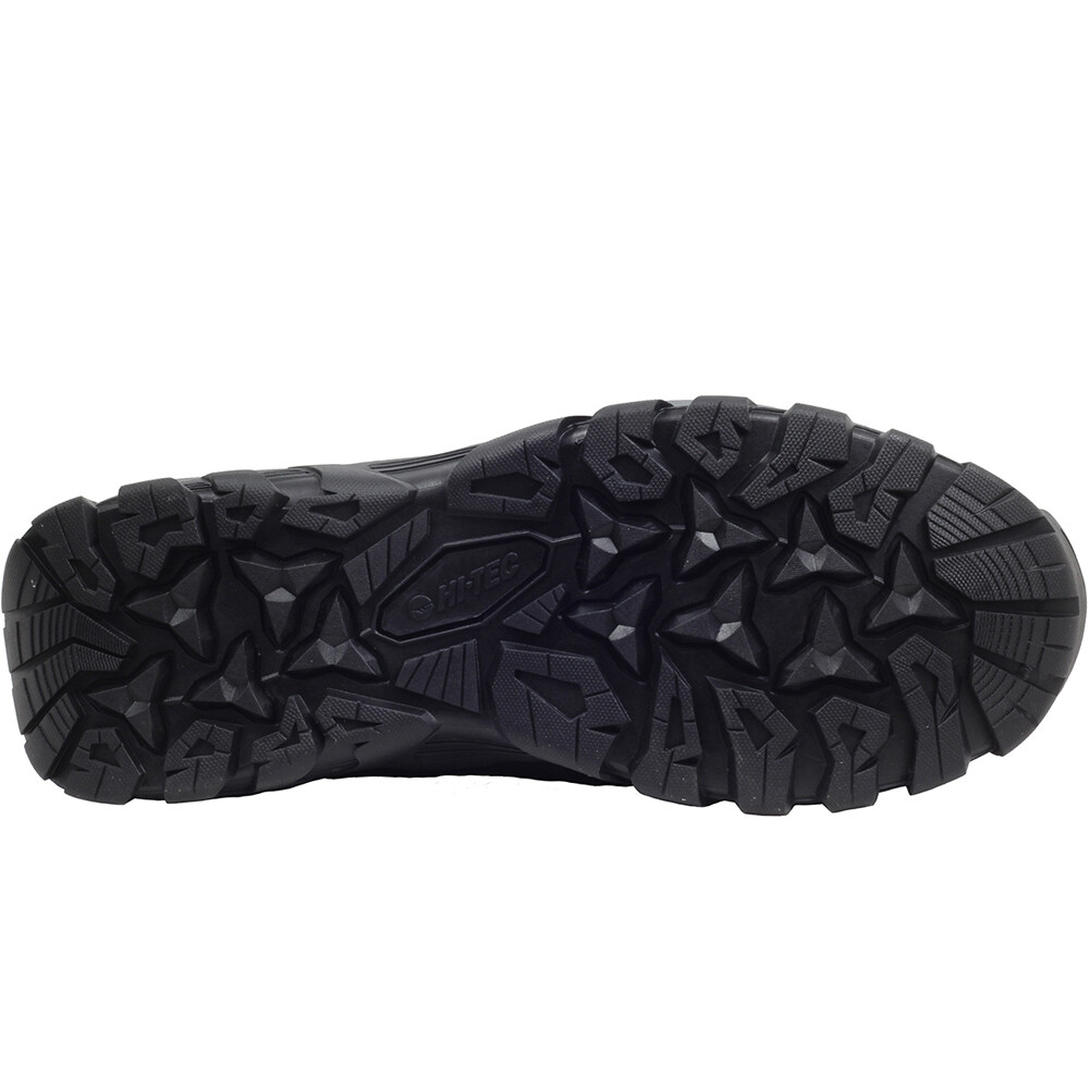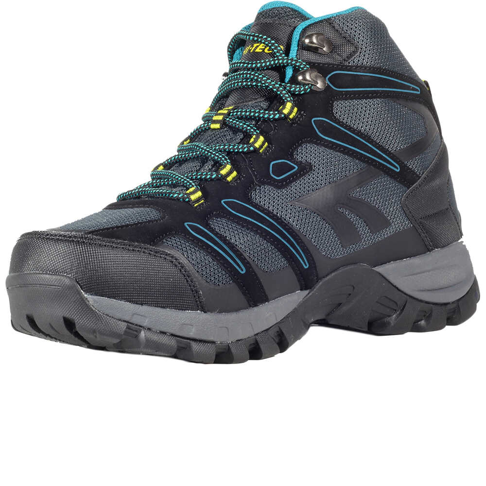 - Bota de montaña cómoda Hi Tec Muflon Mid Wp hombre, negra y amarilla, ligera y ágil para actividades al aire libre sobre terrenos mixtos en cualquier estación del año.