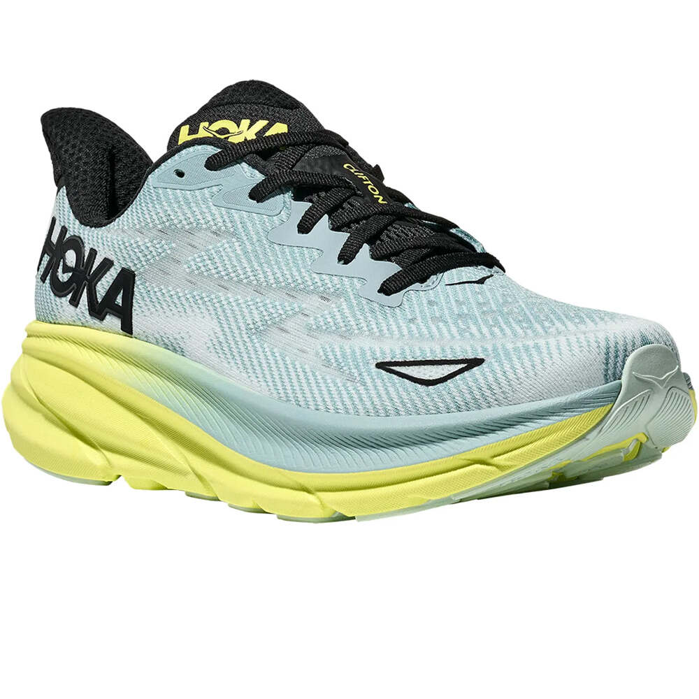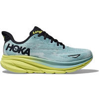 - La parte superior de las zapatillas running Hoka Clifton 9 Verde Amarillo Negro está confeccionada en tejido de punto técnico transpirable para un ajuste preciso que mantiene la estructura y la pisada fluida. La construcción sin costuras minimiza la rozaduras y fricciones que pueden provocar la aparición de ampollas.