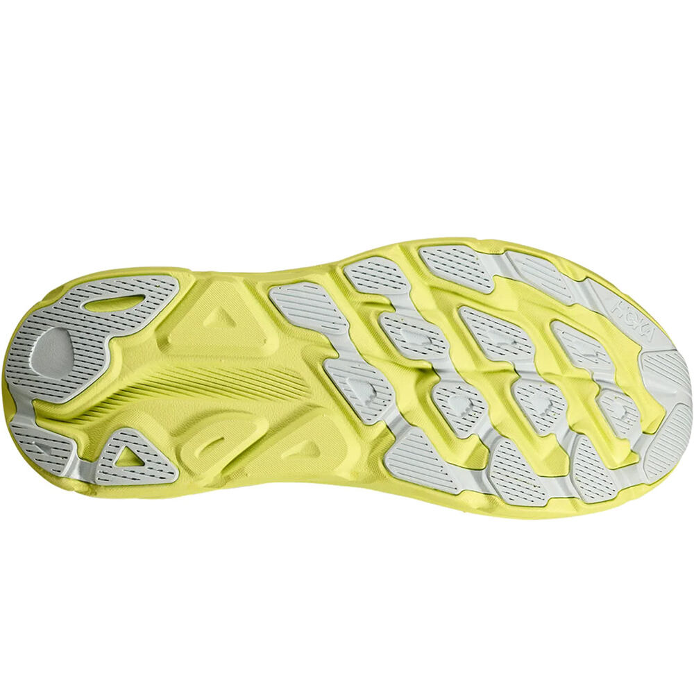 - La suela de la zapatilla running Hoka Clifton 9 lleva caucho Durabrasion Rubber™ colocado de forma estratégica para más tracción y durabilidad. El diseño Full Ground Contact ofrece flexibilidad y una suave transición talón-puntera.