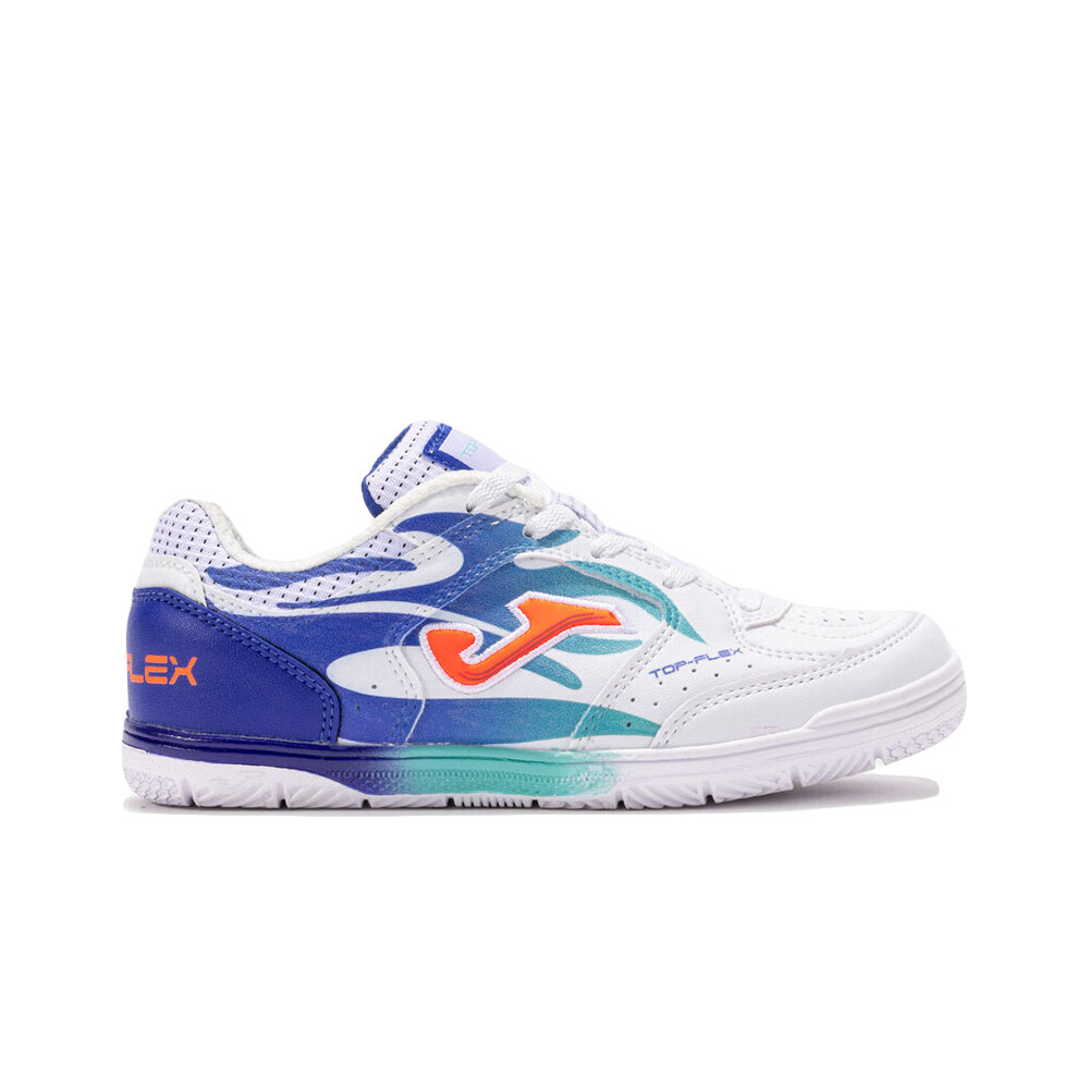 - Para jóvenes jugadores de fútbol sala que empiezan y entrenan 1 o 2 veces a la semana. La zapatilla fútbol sala infantil Joma Top Flex JR IN está desarrollada para los jóvenes futbolistas que necesitan un calzado de calidad para evolucionar en su juego. El corte está realizado con material sintético resistente, y tejido transpirable en la zona del talón y lengüeta. La suela de goma DURABILITY aporta la tracción y estabilidad a sus movimientos con el balón. Para jugar en terrenos indoor, pistas de parquet y cemento poco abrasivo.