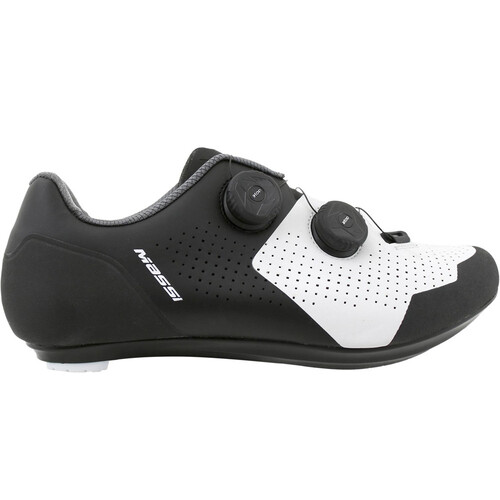 - La zapatilla Massi ROAD PROTEAM Gris Negro está confeccionada con una cubierta superior de material sintético de perfecta adaptación al pie, y microperforaciones láser de ventilación. El sistema de cierre con doble dial ATOP de ajuste milimétrico, evita los puntos de presión y asegura una sujección firme y cómoda. Interior en tejido suave y transpirable, con cuello antideslizante.