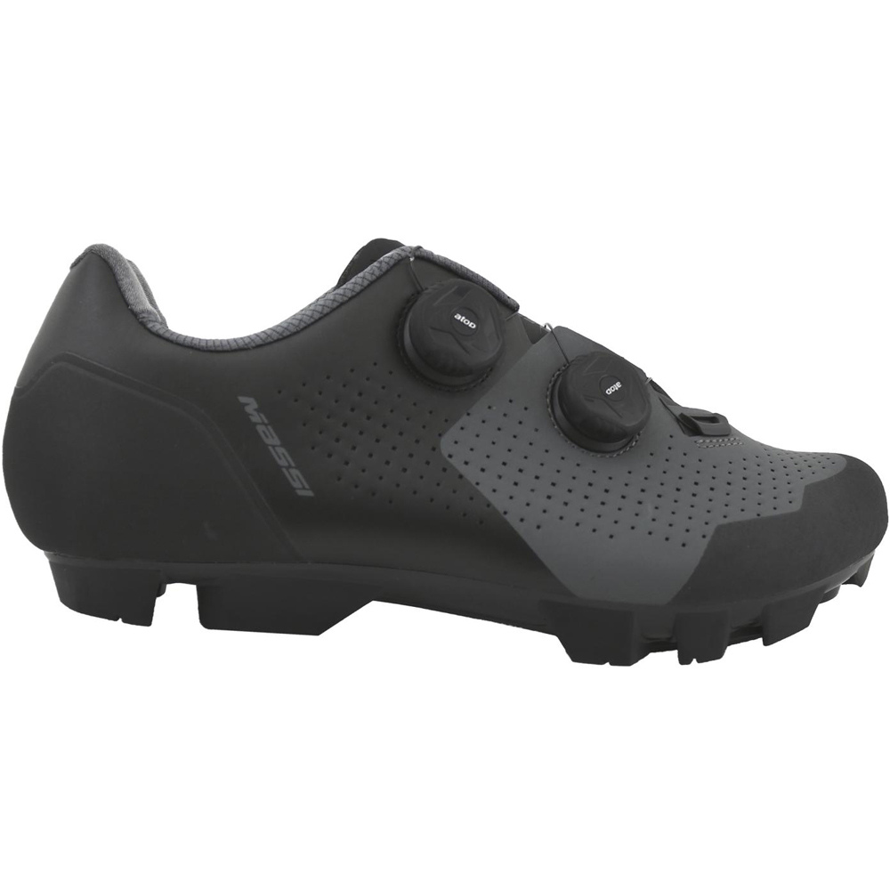 - La zapatilla Massi MTB PROTEAM Gris está confeccionada con una cubierta superior de material sintético de perfecta adaptación al pie, y microperforaciones láser de ventilación. El sistema de cierre con doble dial ATOP de ajuste milimétrico, evita los puntos de presión y asegura una sujección firme y cómoda. Interior en tejido suave y transpirable.