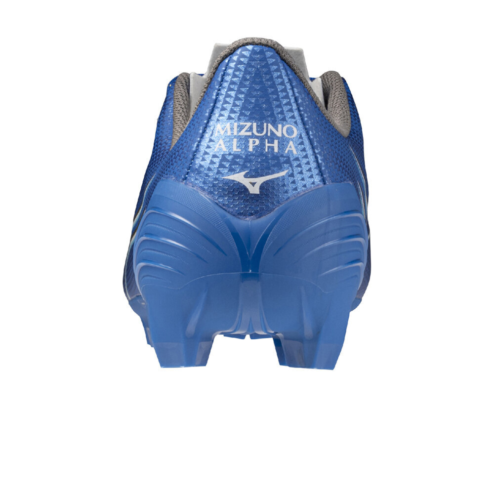 - La bota fútbol Mizuno ALPHA SELECT FG/AG está indicada para múltiples superficies, césped artificial, tierra y hierba natural firme. Lleva una placa de tacos triangulares 9+4 cónicos PU con estructura de contrafuerte exterior, dándote un equilibrio perfecto entre confort y velocidad.