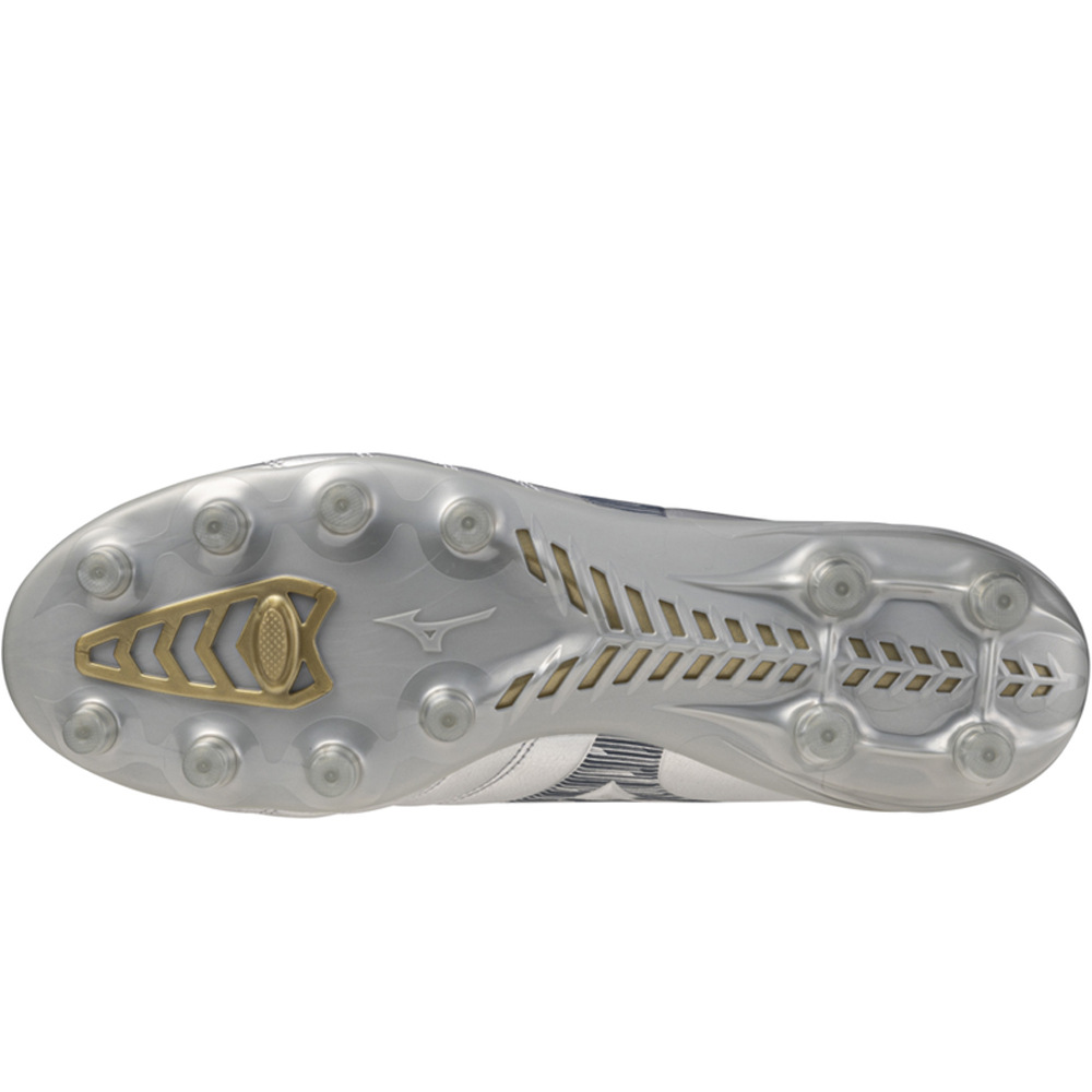 - La bota fútbol Mizuno MONARCIDA III PRO MD presenta una suela ligera de TPU que ofrece una gran comodidad y una optima distribución del peso, asegurando un buen agarre y control de movimientos sobre el campo. Su estructura de 13 tacos cónicos favorecen la comodidad y la estabilidad para jugar en campos de hierba natural secos y césped artificial de última generación.