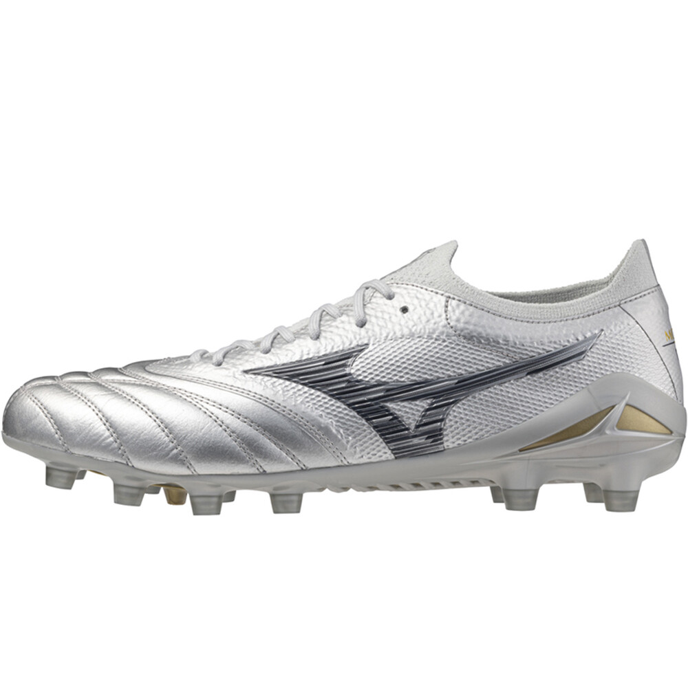 - La bota fútbol Mizuno MORELIA NEO IV BETA ELITE JAPAN MD se presenta con una placa graduada de Pebax con configuración de 13 tacos cónicos para un excelente agarre y aceleración, con diseño de talonera exterior para un mayor soporte del pie y estabilidad. Para jugadores de velocidad y técnicos que necesitan una bota ligera de ajuste excepcional y rápida en los sprints. Perfecta en campos de hierba natural secos.