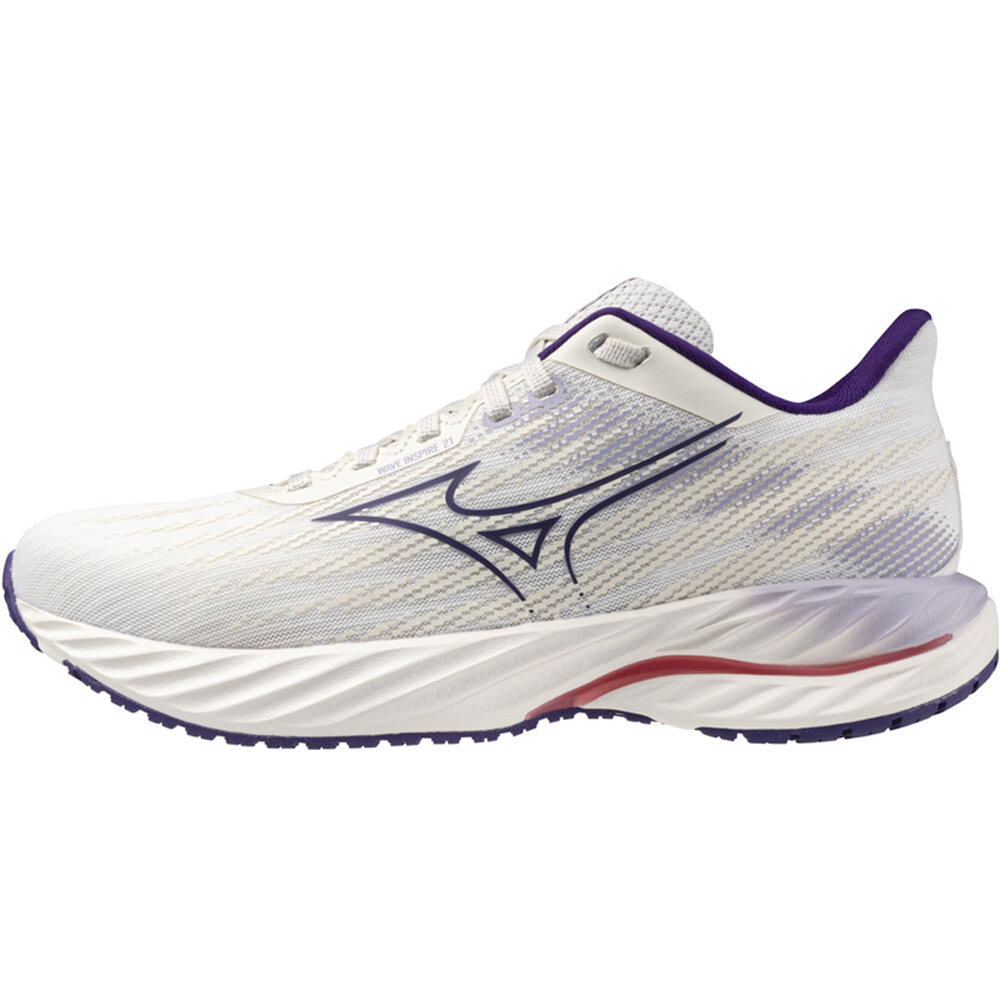 - El upper de las zapatillas running Mizuno Wave Inspire 21 Violeta Coral se presenta en tejido y acabado Engineered Mesh de mayor flexibilidad y ventilación, con superposiciones que aumenta el ajuste y el apoyo del pie. El nuevo collar del talón se extiende y facilita la maniobra de calzado. La lengüeta microperforada está unida lateralmente al interior. Plantilla Premium de máxima amortiguación y ventilación.