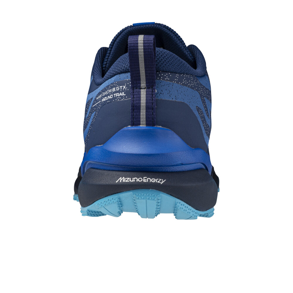 - La zapatilla trail running Mizuno Wave Daichi 8 Gore-Tex® Azul Marino presenta un upper con membrana Gore-Tex® impermeable y resistente que aísla el pie en condiciones de humedad y lluvia. El mesh de tejido técnico resistente aporta un alto nivel de protección y un ajuste cómodo pero estable. Refuerzo doble en la puntera y talón, con tirador trasero.