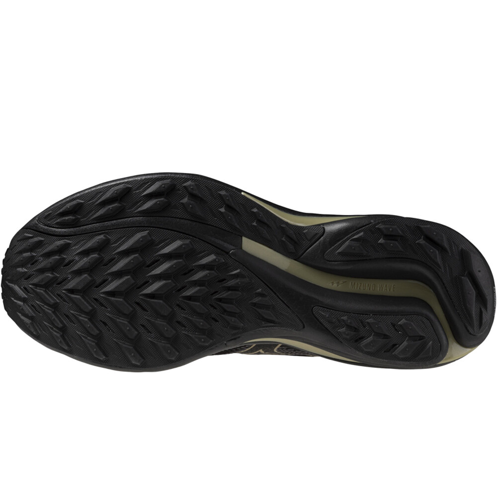 - La parte superior presenta una malla ligera, tupida y resistente, con acabado sin costuras. Cuenta con capa interior de tejido Gore-Tex® impermeable que repele el agua y el barro para mantener los pies secos y confortables. La zapatilla trail running Mizuno WAVE RIDER GORE-TEX 2 Negro tiene un ajuste óptimo que las convierte en más dinámicas y flexibles. Cuenta con puntera reforzada TPU, que aporta protección y más durabilidad.