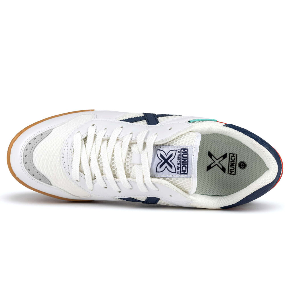 - Las zapatillas de fútbol sala Munich CONTINENTAL V2 Blanco Azul llevan el empeine de piel sintética y textil de nylon resistente, con un interior textil en rejilla que facilita la transpiración.