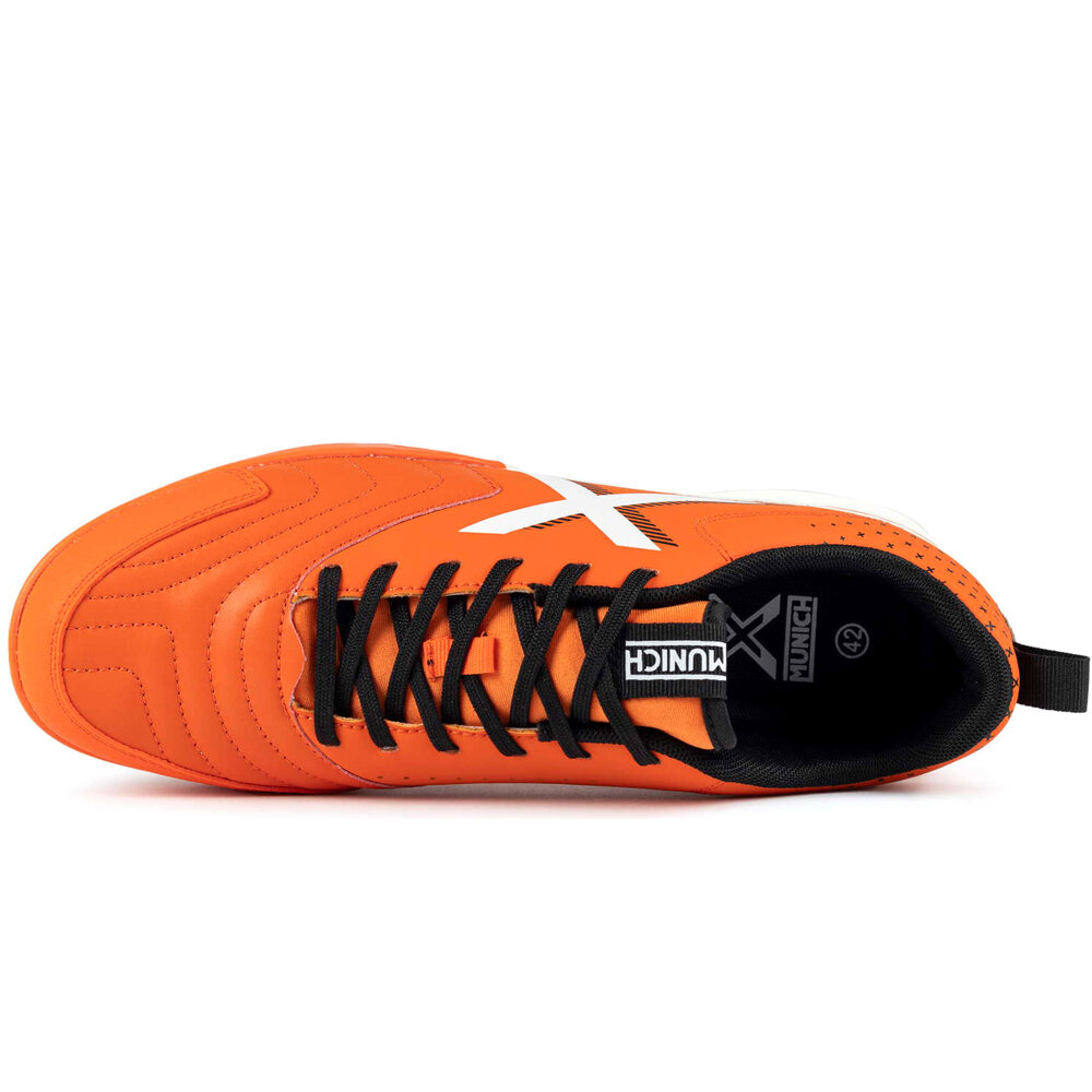 - Las zapatillas de fútbol sala Munich Rondito Naranja Blanco Negro están fabricadas con un empeine de material sintético e interior textil de rejilla que facilita la comodidad y la ventilación. Lengüeta fina para un ajuste preciso y ajustado al pie.