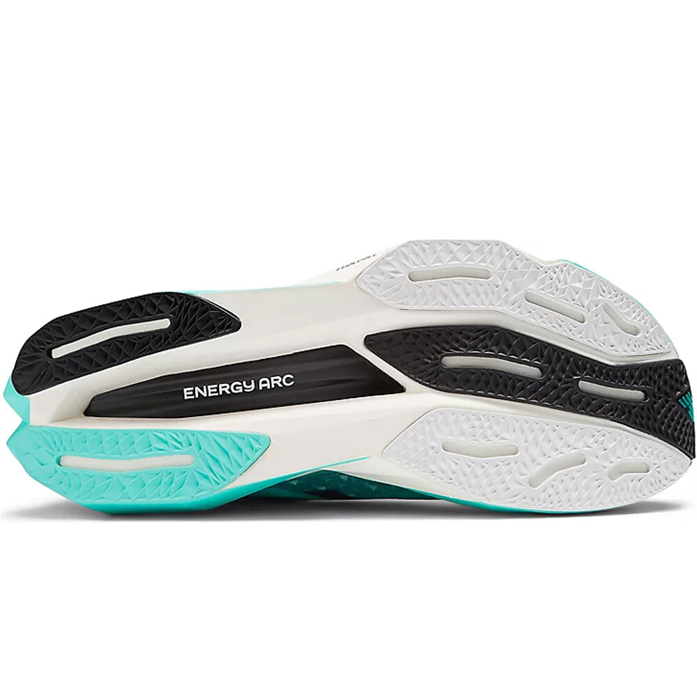 - La parte superior de las zapatillas running New Balance FuelCell SuperComp Elite v4 Verde Turquesa Blanco Negro, está confeccionada con el nuevo tejido FantomFit extremadamente ligero y de máxima transpirabilidad. El renovado diseño añade elementos mínimos superpuestos que aportan estructura, mientras el ajuste se acopla el pie para mejorar las sensaciones de velocidad en carrera. La lengüeta elástica no va unida al cuerpo interior.